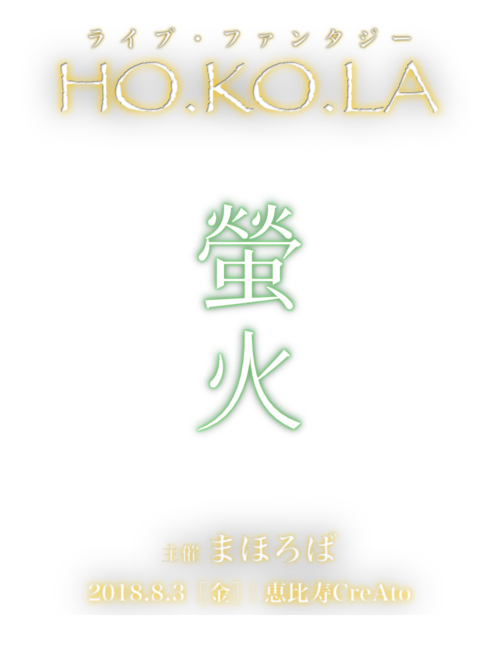 HO.KO.LAは、お客様ひとりひとりへの"おもてなし"をコンセプトに、HO.KO.LAをめぐるおとぎばなしの世界へお誘いし、そこで一曲一曲をご堪能いただくライブイベントです。